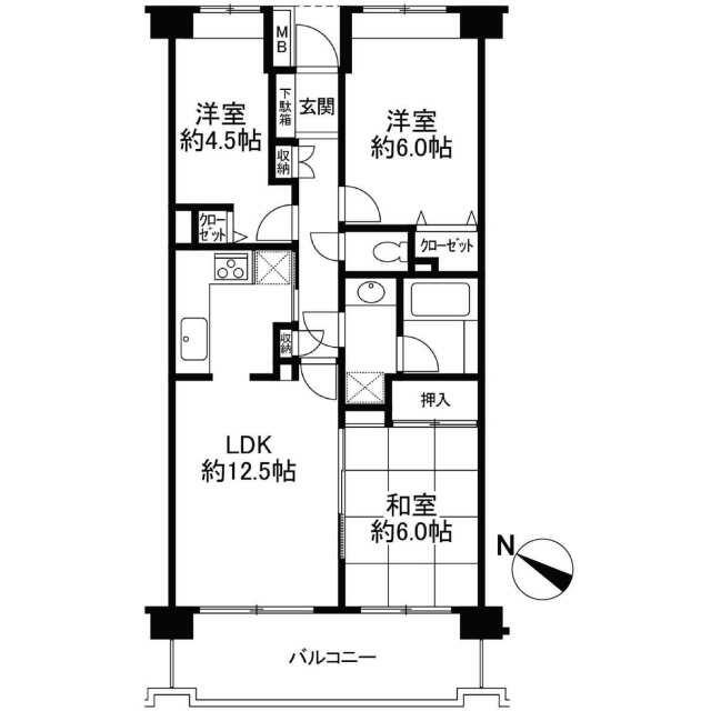 | 間取り(内訳) | 3LDK(和6洋6/4.5LDK12.5) | ||